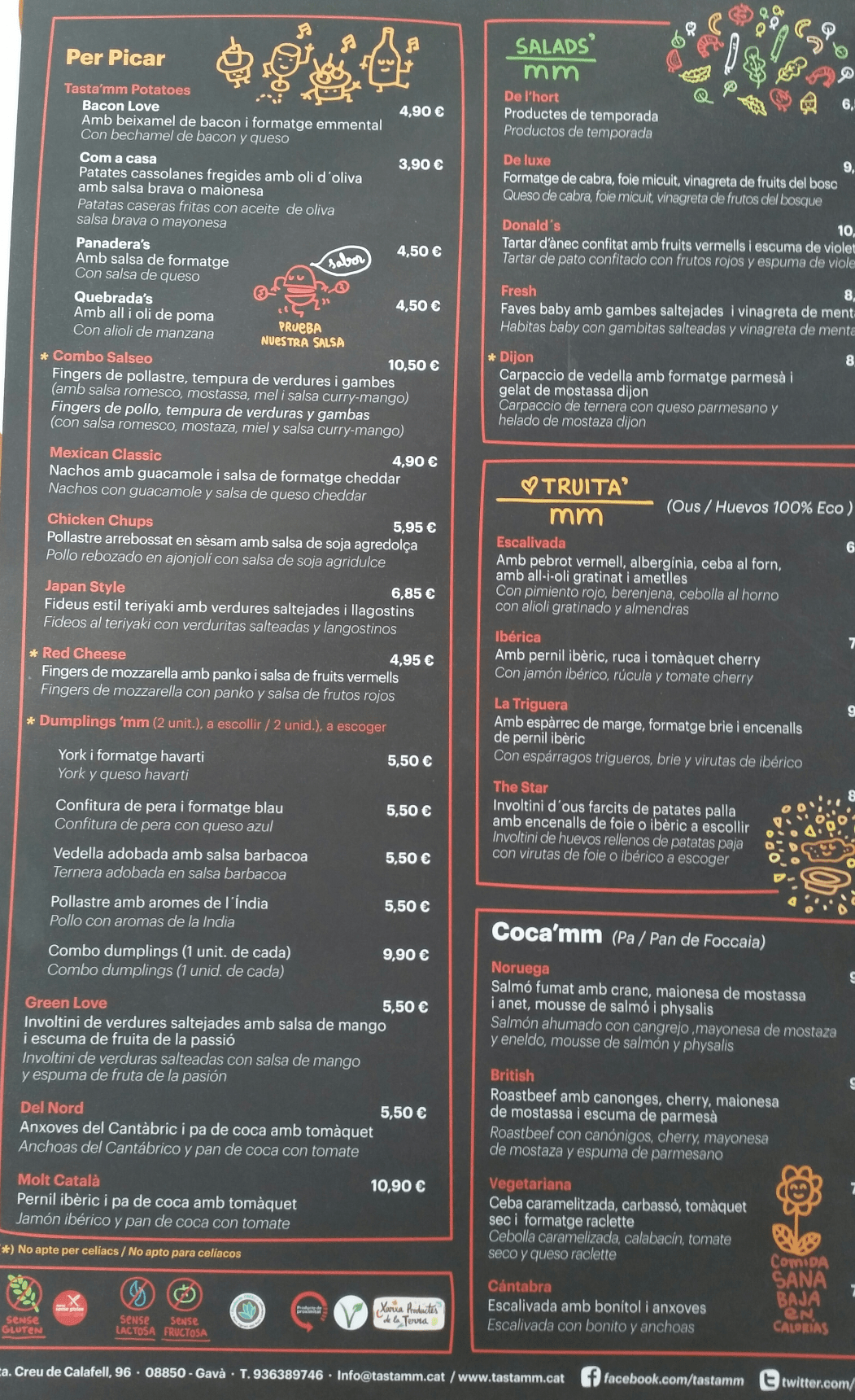 Voy a hacer otra excepción en mi blog para salir un momento de la ciudad de Barcelona y escribir sobre este restaurante situado en Gavà. ¿La razón? Pues porque aunque desde hace ya unos cuantos años vivo en Barcelona, yo he crecido y vivido siempre en esta ciudad del Baix Llobregat, y me ha hecho mucha ilusión poder ir a mi pueblo y comer en un restaurante apto para celíacos. Y es que, que yo sepa, hasta ahora no había ninguno. Así que cuando desde la Asociación de Celíacos de Catalunya nos informaron de que añadían el restaurante Tasta’mm a su listado, tardé bien poco en hacerles una visita.