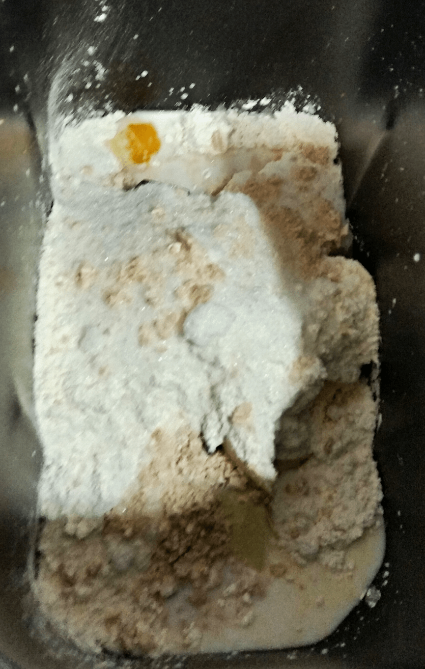 Antes de nada, advertiros que yo usé mi panificadora para elaborar la masa. Si no tenéis panificadora, Thermomix o similar, podéis intentar amasar a mano, aunque deberéis tener una paciencia extrema. Si tenéis panificadora, la receta es tan fácil como lo siguiente: cogéis todos los ingredientes mencionados arriba, lo metéis en la panificadora y ponéis la máquina a amasar. Yo la tuve durante unos 8 minutos.