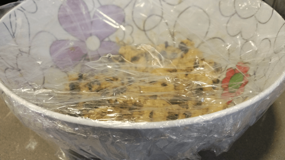 A continuación, tapáis el bol con papel film y lo metéis en la nevera durante media hora como mínimo (yo lo tuve casi una hora). Así la masa se endurecerá y podréis hacer las bolitas sin que se os pegue en los dedos. Mientras tanto, podéis ir precalentando el horno a 180º.