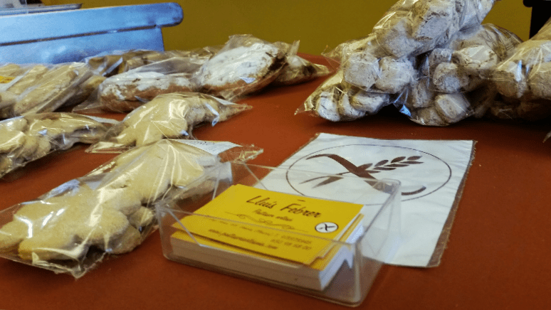Otra sorpresa que encontramos en Ferreries fue la pastelería Lluís Febrer (Carrer Dean Febrer, 65), ubicada muy cerca del restaurante. Allí encontraréis una pequeña selección de productos sin gluten: ensaimadas de Nutella, magdalenas, crespellets, melindros, carquinyols y amargos fue lo que yo encontré el día que fui. Todo bien precintado, señalizado y expuesto en el mostrador de la entrada. Si queréis algún pastel o algo en concreto, debéis encargarlo. Si no, pues encontraréis lo que haya ese día. Yo me fui con unas magdalenas y unos crespellets que fueron mi desayuno los siguientes días (por desgracia, mi alergia a los frutos secos me impidió probar más cosas).