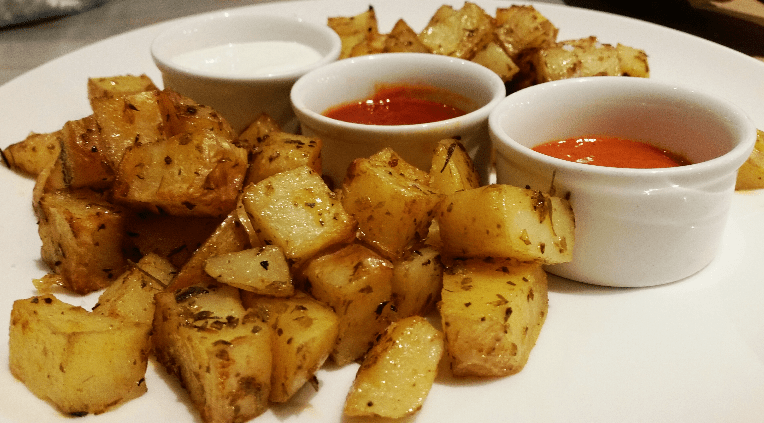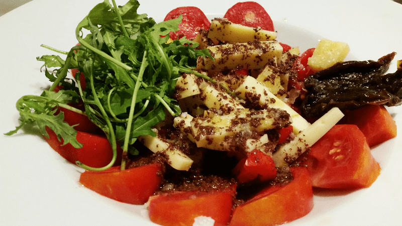 El otro restaurante que probamos está en Ciutadella y se llama Fang i Aram (Carrer Gabriel Martí i Bella, 11). Se trata de un vegetariano que está un pelín lejos del centro y en el que te especifican en la carta los platos sin gluten o que pueden adaptar. Nosotros pedimos las patatas con tres salsas y las alcachofas para compartir, y después yo pedí la ensalada de tomates y quesos de Menorca (con rúcula y olivada negra). Tengo que confesar que tengo mis dudas con este sitio. Por un lado, estaba todo muy bueno y se nota que utilizan buenos productos para cocinar, pero por otro lado… algo me sentó mal y terminé toda hinchada. Ahora bien, no estoy diciendo que me contaminaran con gluten ni nada, ya que, en principio, yo soy asintomática (aunque a veces empiezo a dudarlo) y puede que simplemente me sentara algo mal relacionado con otra de mis mil alergias o puede que fuera una simple casualidad. De todas formas, dejo aquí en ‘warning’ por escrito, por si acaso, ya que no sé exactamente qué pasó.