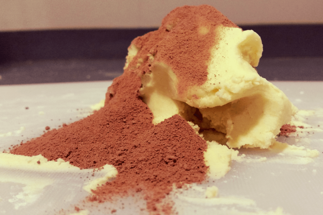 A continuación llega el momento de decidir de qué sabor queréis los polvorones. Yo me decanté por hacer la mitad de chocolate y la otra mitad de canela, pero podéis hacerlos de limón, de almendra… vaya, de lo que queráis. En mi caso, dividí la masa en dos partes: a una parte le puse una cucharada de Nesquik (podéis usar también chocolate en polvo puro) y a la otra le puse una cucharada de canela. A continuación hay que amasar de nuevo bien las dos masas para que el chocolate y la canela queden bien integrados.