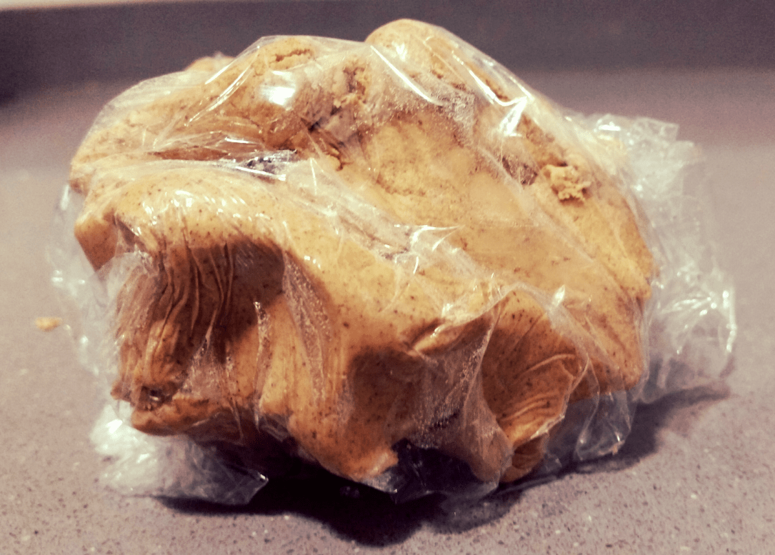 Ahora debéis envolver las dos masas en papel film y meterlas en la nevera durante media hora para que se endurezcan un poco. Mientras tanto, podéis ir calentando de nuevo el horno a unos 180º.