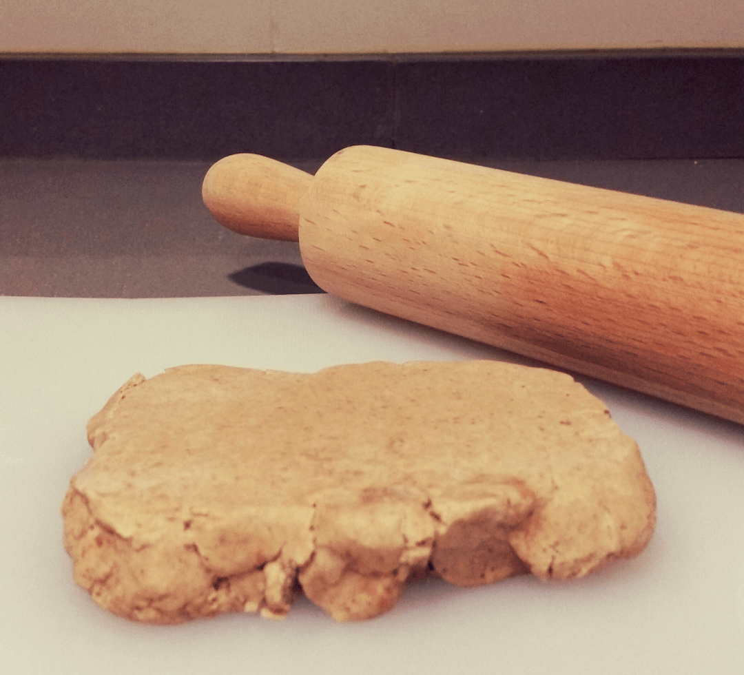 Después de la media hora de nevera, con la ayuda de un rodillo plancháis la masa hasta darle el grosor deseado y, con un cortador, vais creando los polvorones y los ponéis en la bandeja del horno.