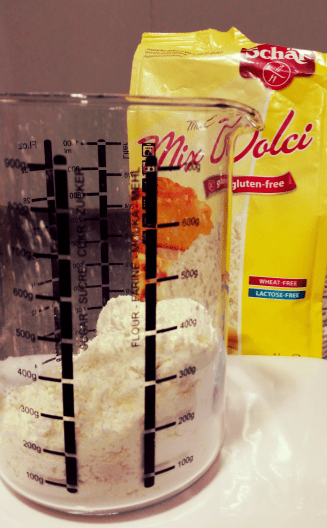 – 150 gr. de harina. Yo he usado el Mix C de Schär (Mix Dolci)