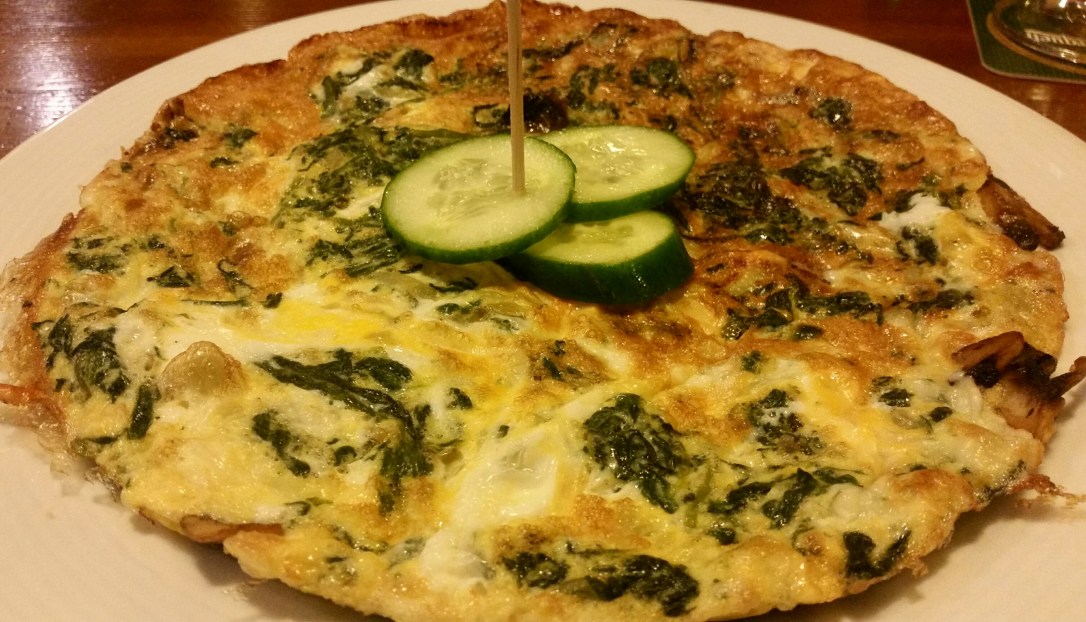 La última noche que pasamos en la ciudad, repetimos y volvimos aquí, ya que estaba cerca del hotel. Ese día pedí la tortilla de espinacas, champiñones y queso. Quería algo un poco más ligerito… y no me lo pude acabar! Vaya, que no se cortan con las raciones.