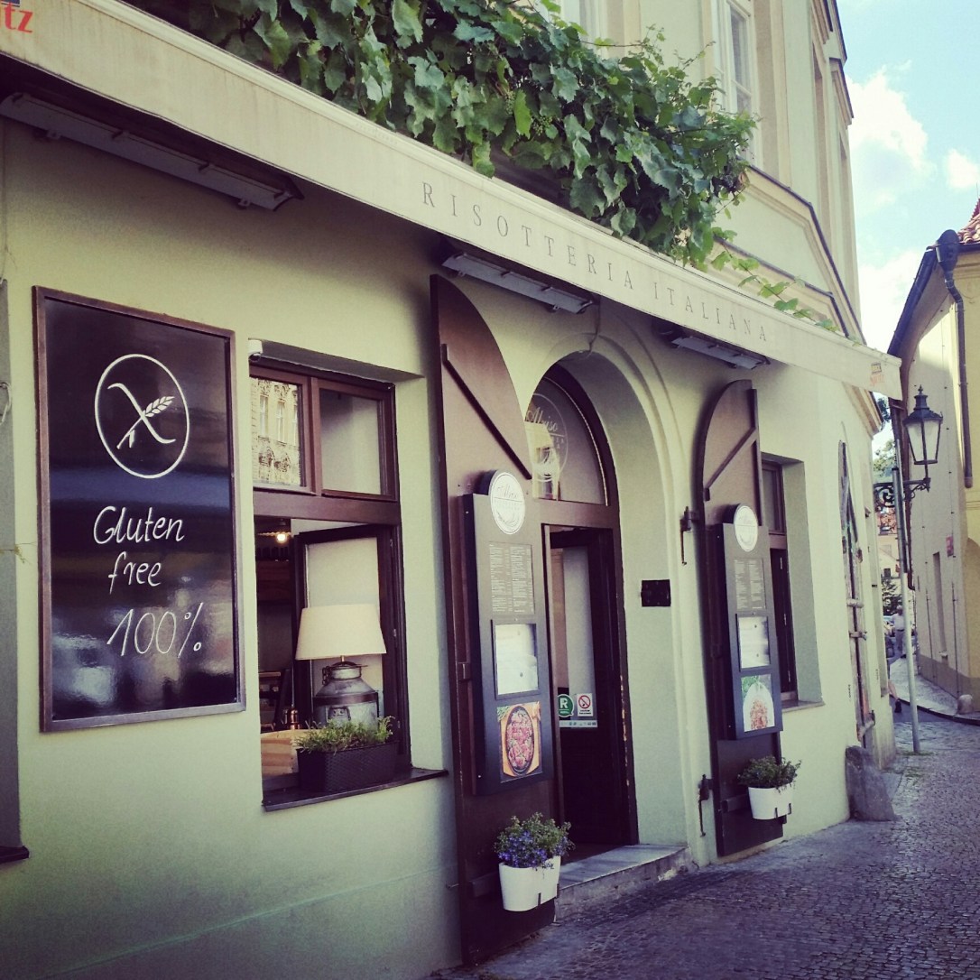 Y ahora viene el lugar estrella de Praga: Alriso Risotteria. Sí, es una risotteria y sí, es 100% sin gluten. Pero no solo eso, te sirven al empezar pan casero con aceite, el risotto es sencillamente espectacular, podéis probar la cerveza Celia y los postres… están para chuparse los dedos. La panna cotta que probé estaba especialmente brutal. Vaya, que si vais a Praga, no podéis dejar de comer aquí.